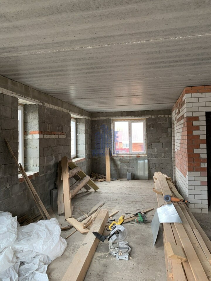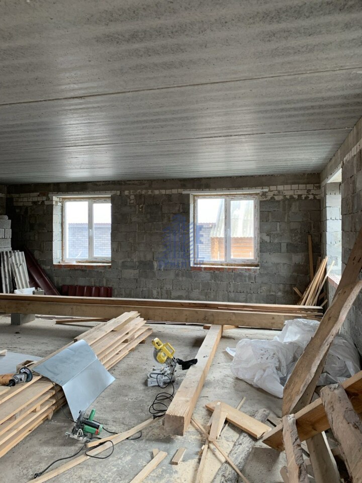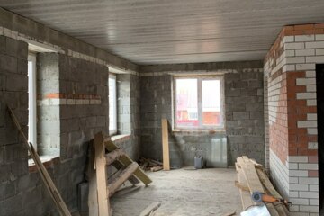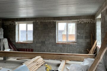 В доме уже частично произведена внутренняя отделка, заведена электропроводка по обоим этажам, на втором этаже межкомнатные перегородки дополнительно утеплены и обшиты гипсокартоном, установлены пластиковые окна с тройным стеклопакетом.