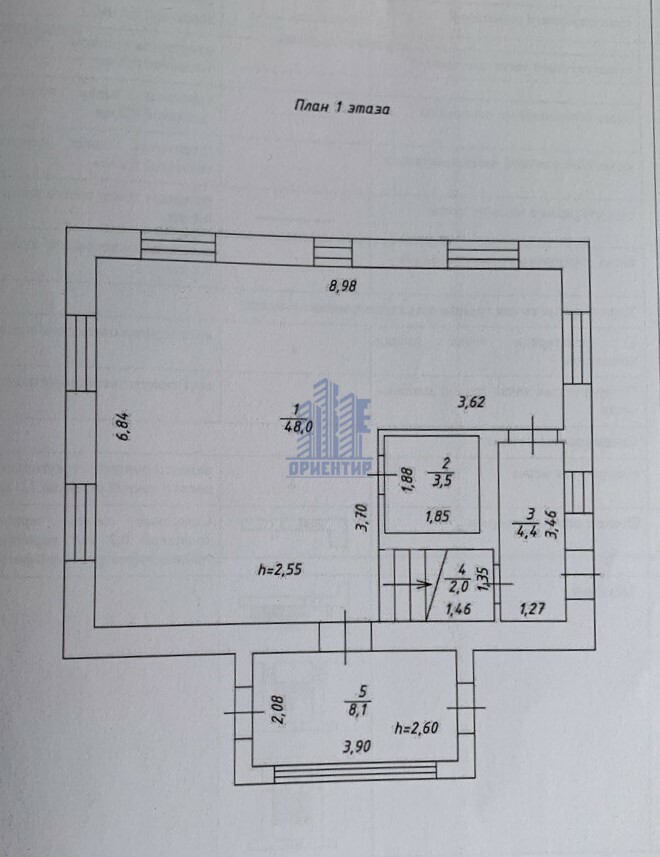 - первый этаж - 66 кв/м (высота 2,55 м.)