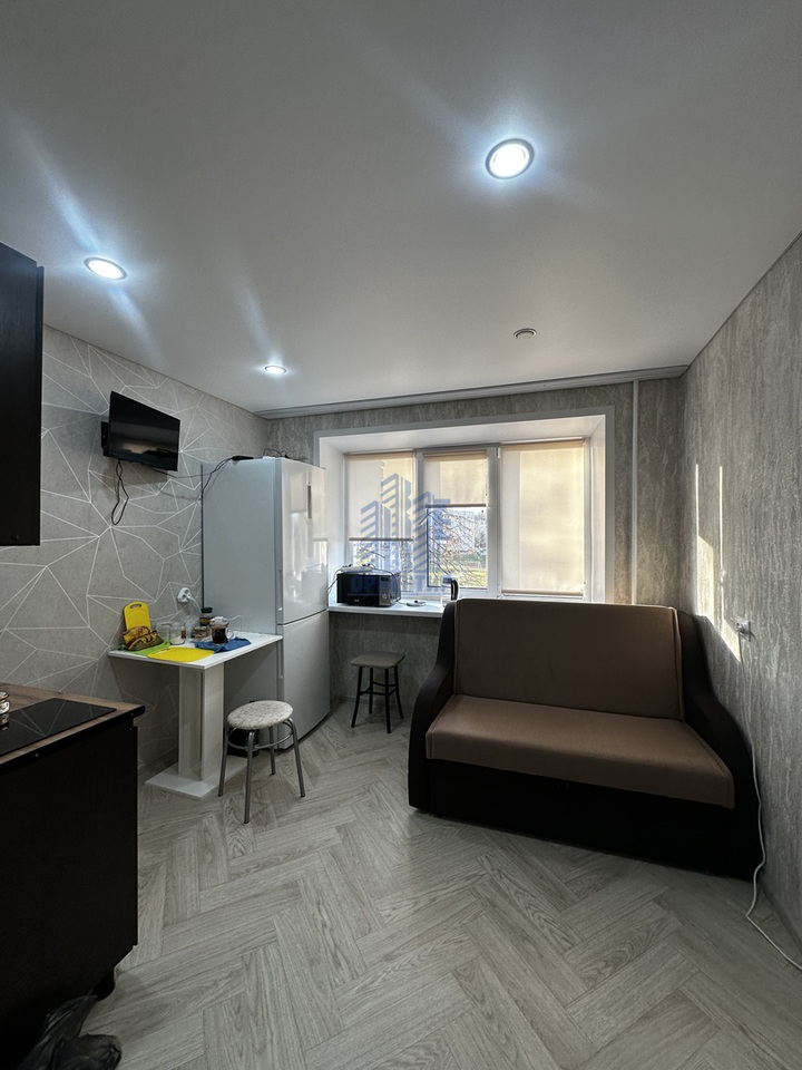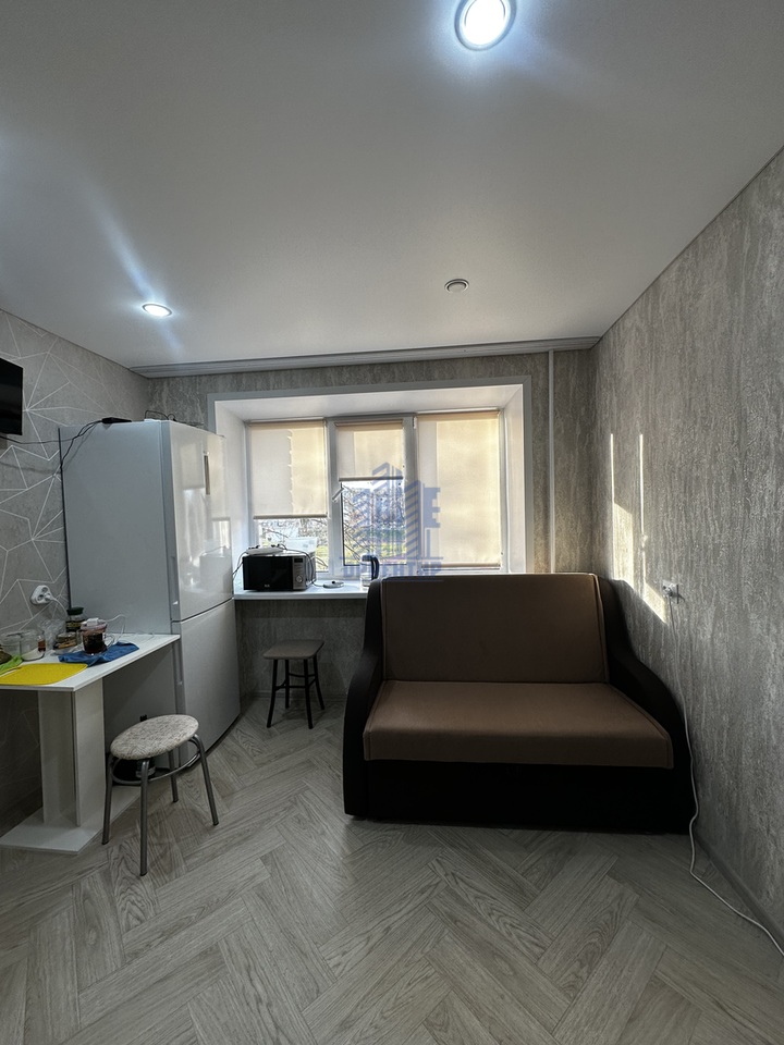 В комнате выполнен качественный ремонт ! Останься кухонный гарнитур , шкаф , электро плита !