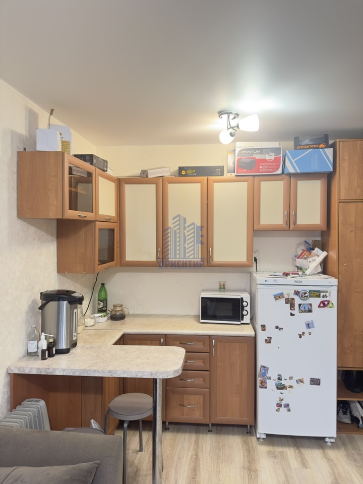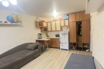 В комнате установлена металлическая дверь, пластиковое окошко, на полу ламинат, натяжные потолки со светильниками, обои в светлых тонах.