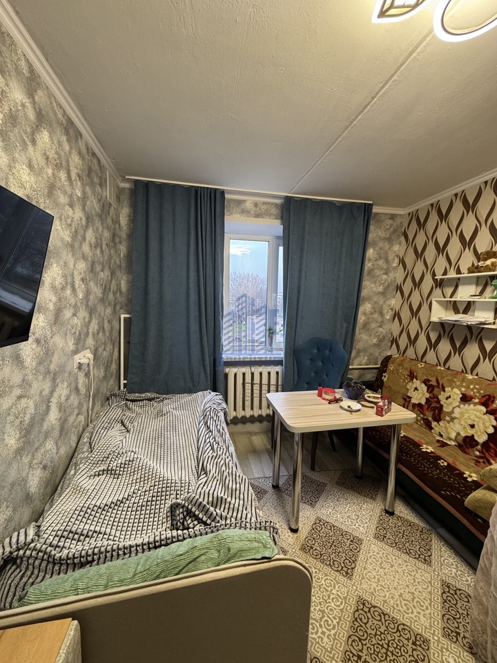 Продается комната в юго-западном районе. Комната площадью 12,2 квадрата. Новое пластиковое окно, поменяна вся электрика, есть свой счетчик. На полу линолеум, при входе теплый пол. Чистый подъезд, стоит домофон.