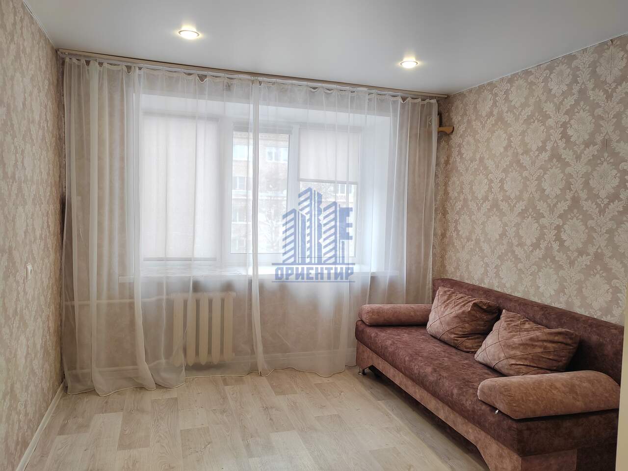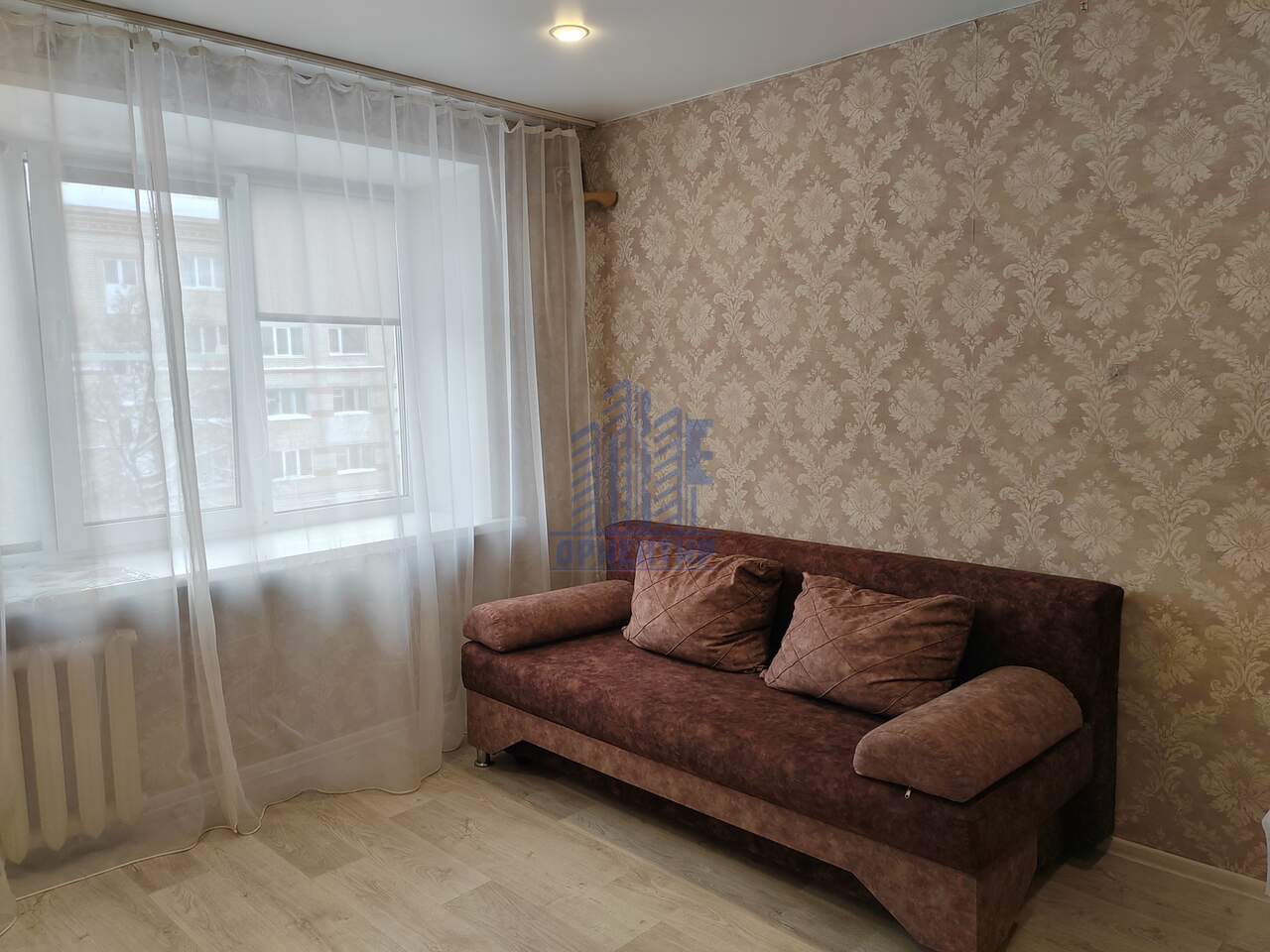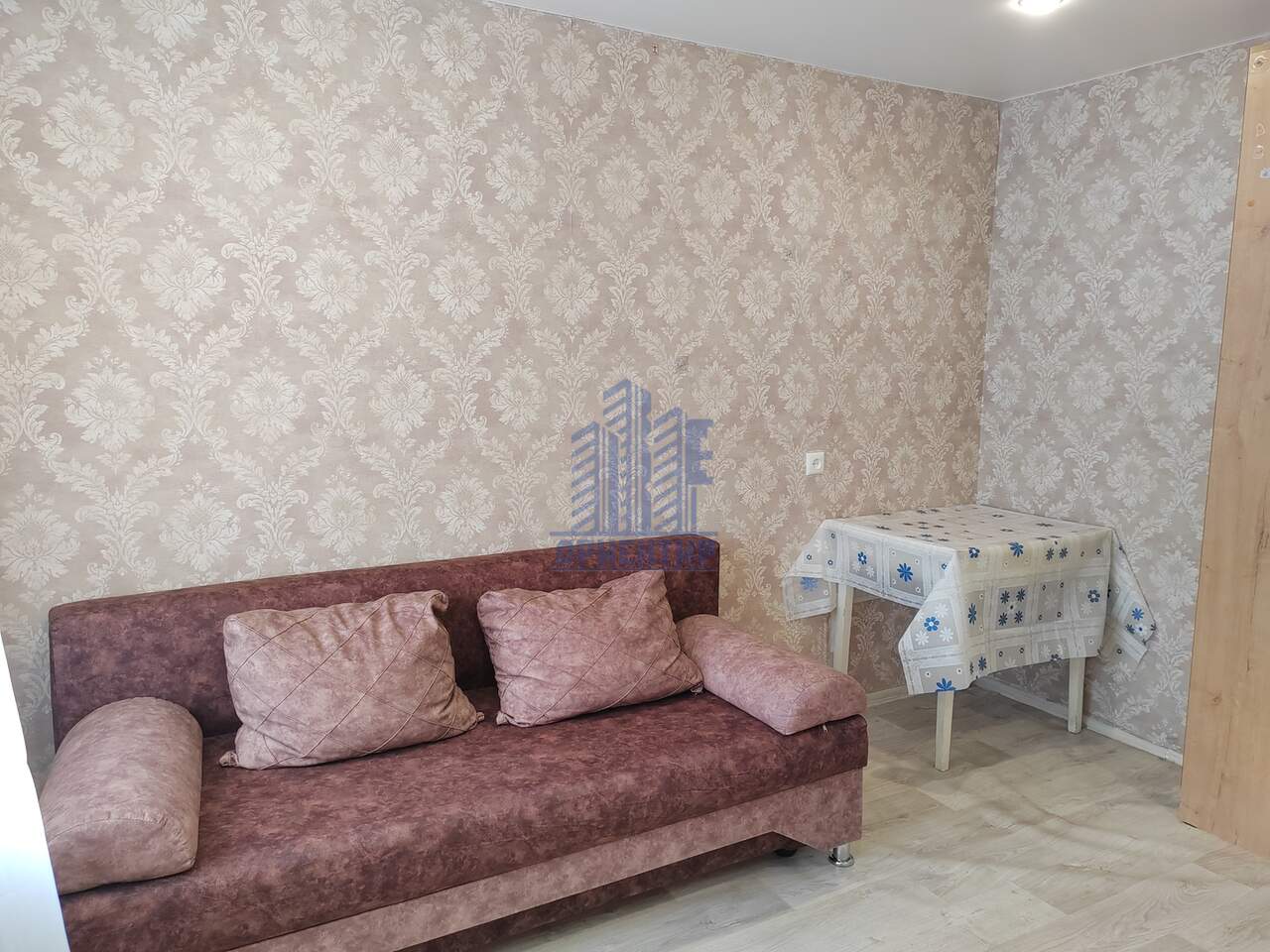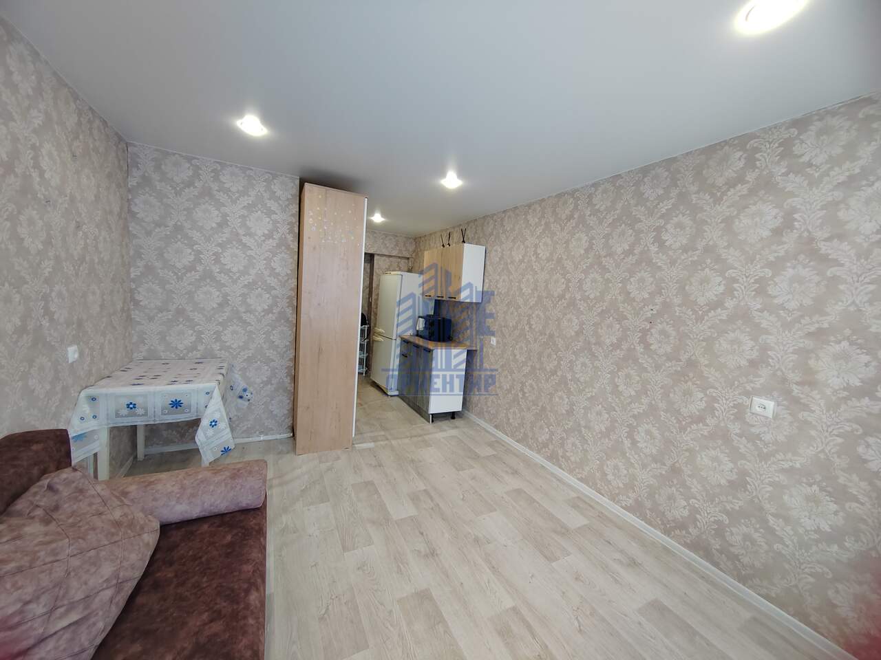 В комнате остаётся вся мебель и техника ( кухонный гарнитур, шкаф, прихожая, диван, холодильник)