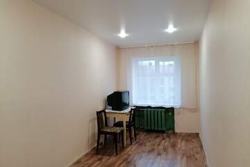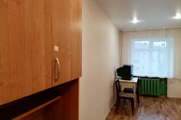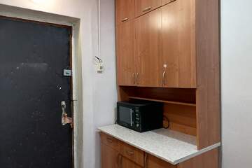 В комнате остаётся мебель и техника для комфортного заселения: телевизор, кухонный уголок, стиральная машина, микроволновка.