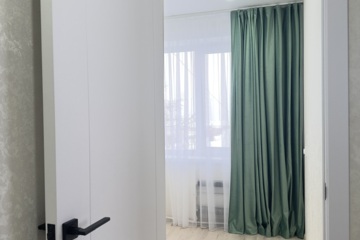В квартире сделан полный качественный ремонт: заменена проводка на медный кабель, установлены пластиковые окна, она полу ламинат, стены выровнены со светлыми обоями, новые двери, в ванной плитка нового образца, новый кухонный гарнитур. Установлены счетчики на воду и газ.