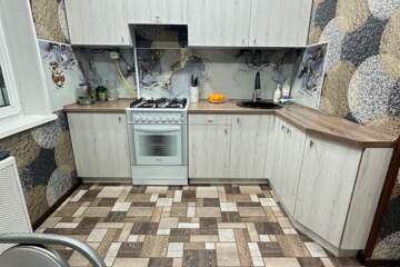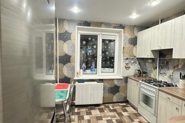 В самой квартире установлены пластиковые окна, на полу линолеум, новые качественные двери, натяжные потолки, балкон обшит вагонкой.