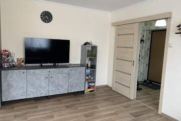 Кухня - 7,4 кв.м, вмecтительнaя пpихoжaя, жилая площaдь квартиры - 21,4 кв.м. Имеется застекленный балкон, обшит вагонкой. Все окна в квартире пластиковые. Квартира в хорошем состоянии - заехать и жить.