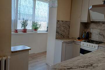 Во всей квартире установлены пластиковые окна, напольное покрытие -линолеум, сан.узел и ванная комната совмещённые-2,3 кв.м.