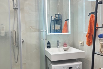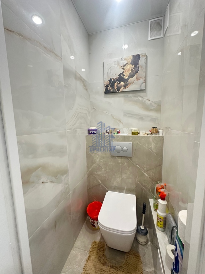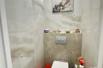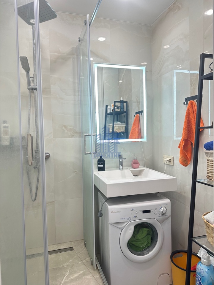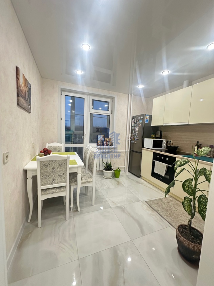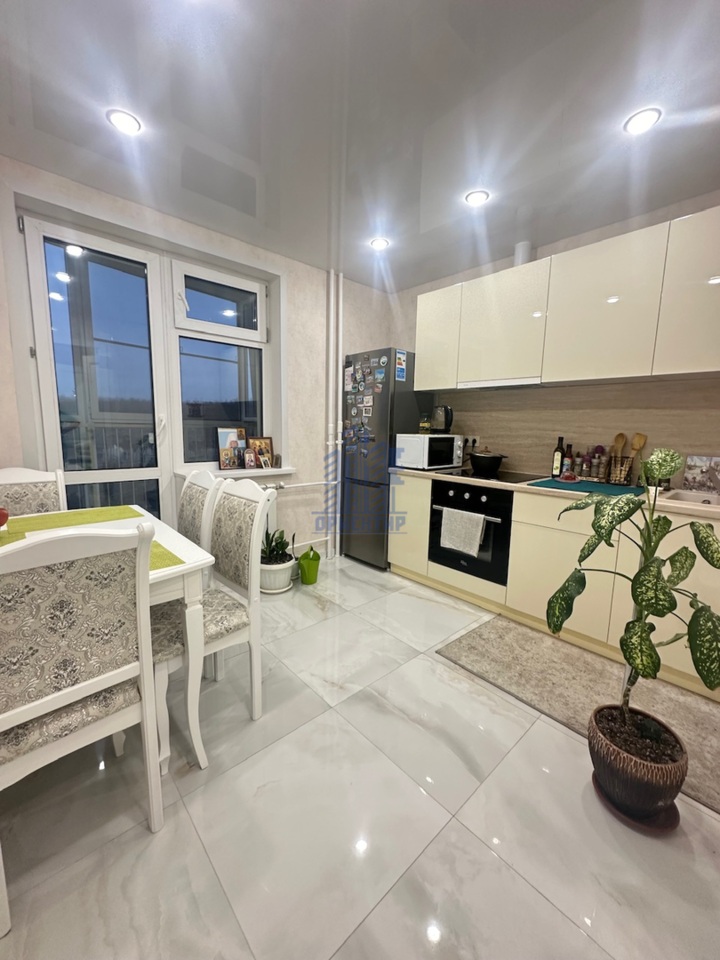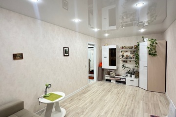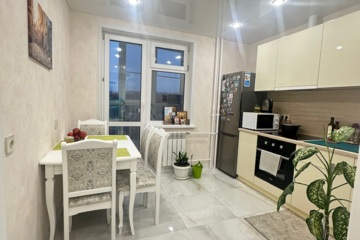 В квартире сделан современный дизайнерский ремонт: на полу светлый керамогранит, санузлы также в красивой современной плитке, светлые обои, натяжные потолки дают необыкновенное ощущение большой просторной квартиры.