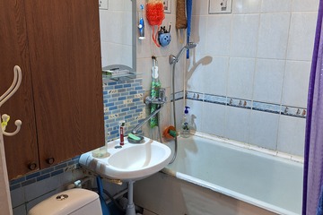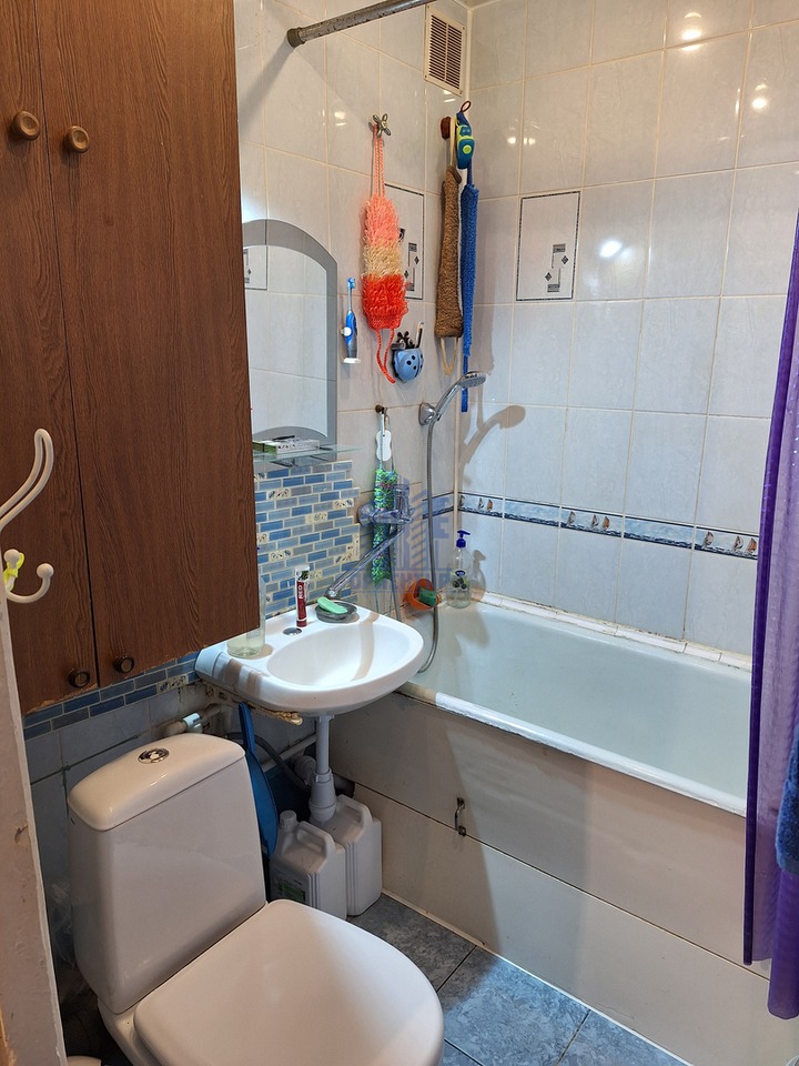 Санузел совмещённый, в кафеле. Просторная комната.
