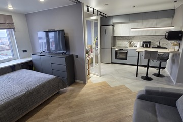 • 42 квадрата уюта. Перепланировка в стильную евродвушку (изолированная спальня + просторная кухня-гостиная).