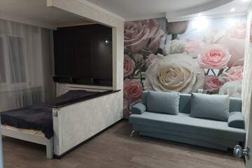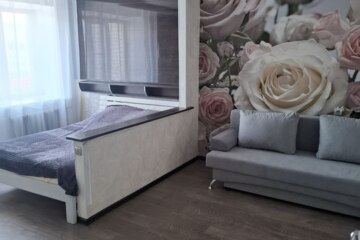 В квартире есть все необходимое для комфортной жизни: диван, кровать, холодильник, стиральная машина.