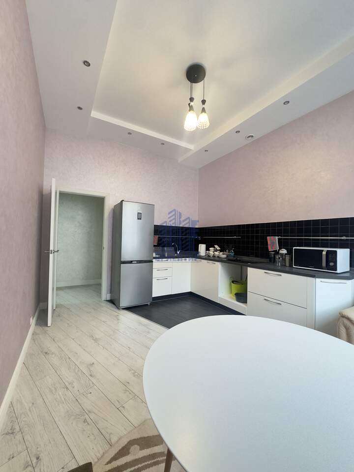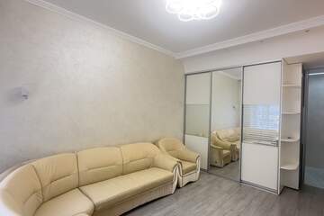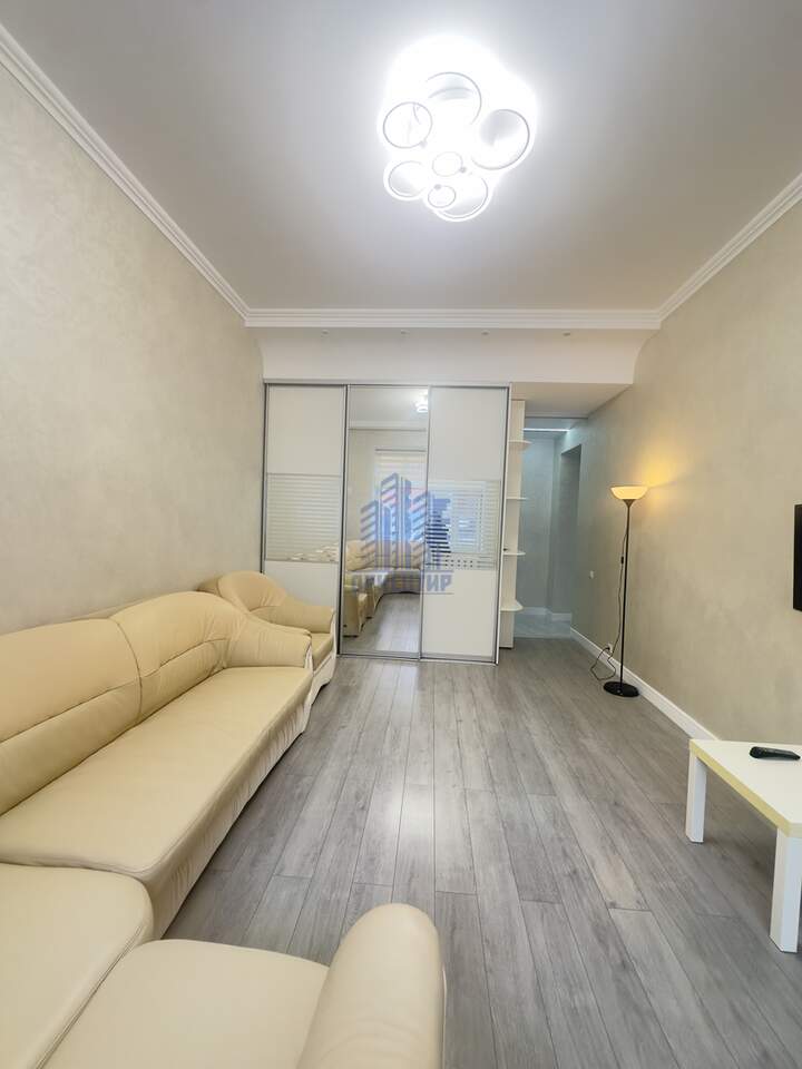 В квартире красивый добротный ремонт: на стенах декоративная штукатурка, на полу ламинат, двухуровневые потолки, функциональная гардеробная система в потолок в прихожей и зале. В квартире остается вся техника и мебель: кожаный диван, гардеробные системы, кухонный гарнитур, стол и стулья, холодильник и стиральная машина.