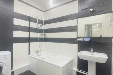 В квартире 3 м высокие потолки, большие панорамные окна, что добавляет больше естественного освещения и делают квартиру более просторной и светлой.