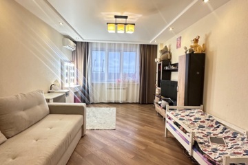 В квартире сделан качественный ремонт, в прихожей и на кухне пол выложен из керамогранита, в зале качественная паркетная доска, натяжные потолки со светильниками,в ванной кафель нового образца. В зале установлен кондиционер, который останется новым хозяевам.