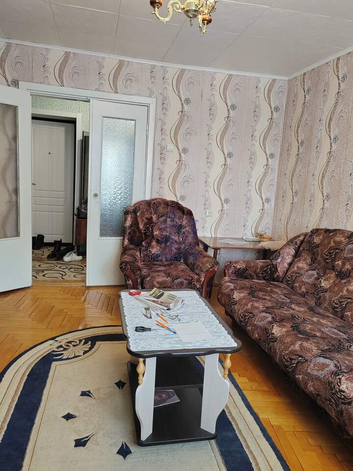 Остаётся частично мебель: кухонный гарнитур, стол, стулья.