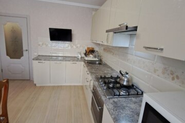 Продается двухкомнатная квартира в центре города в монолитном доме. В квартире сделан качественный ремонт, натяжные потолки, пластиковые окна, на полу ламинат. Сан.узел раздельный в современном кафеле. Просторная кухня площадью 14,5 кв, остается кухонный гарнитур с газовой плитой и вытяжкой. Остальная мебель по договоренности с собственником.