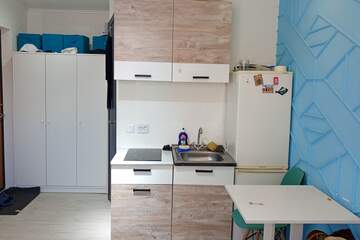 Продаётся студия в районе ХБК по ул. Текстильщиков в д. 12 на 4 этаже 5 эт. кирпичного дома, с ремонтом и с мебелью (кухонный гарнитур, прихожая, стиральная машина, холодильник, комод).