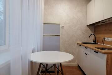 Полная комплектация: В квартире есть всё для комфортной жизни: от удобного дивана, кухонного гарнитура и шкафа до холодильника, стиральной машины и варочной поверхности.