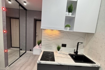 Студия светлая теплая, с новым качественным ремонтом , новой мебелью и техникой. В студии установлены пластиковые окна, на полу ламинат, обои в светлых тонах, натяжные потолки с разными видами подсветок и точечными светильниками.Вся проводка заменена на новый медный провод. В санузле плитка современного образца, вся сантехника новая. Останется вся мебель и техника!